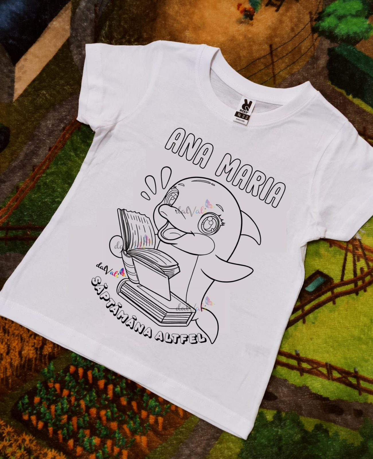Tricoul de colorat poate fi personalizat GRATUIT cu numele copilasului/ denumire clasa deasupra imaginii si scurt text sub imagine (Saptamana Altfel/Verde/textul dvs) sau se poate imprima doar imaginea.
