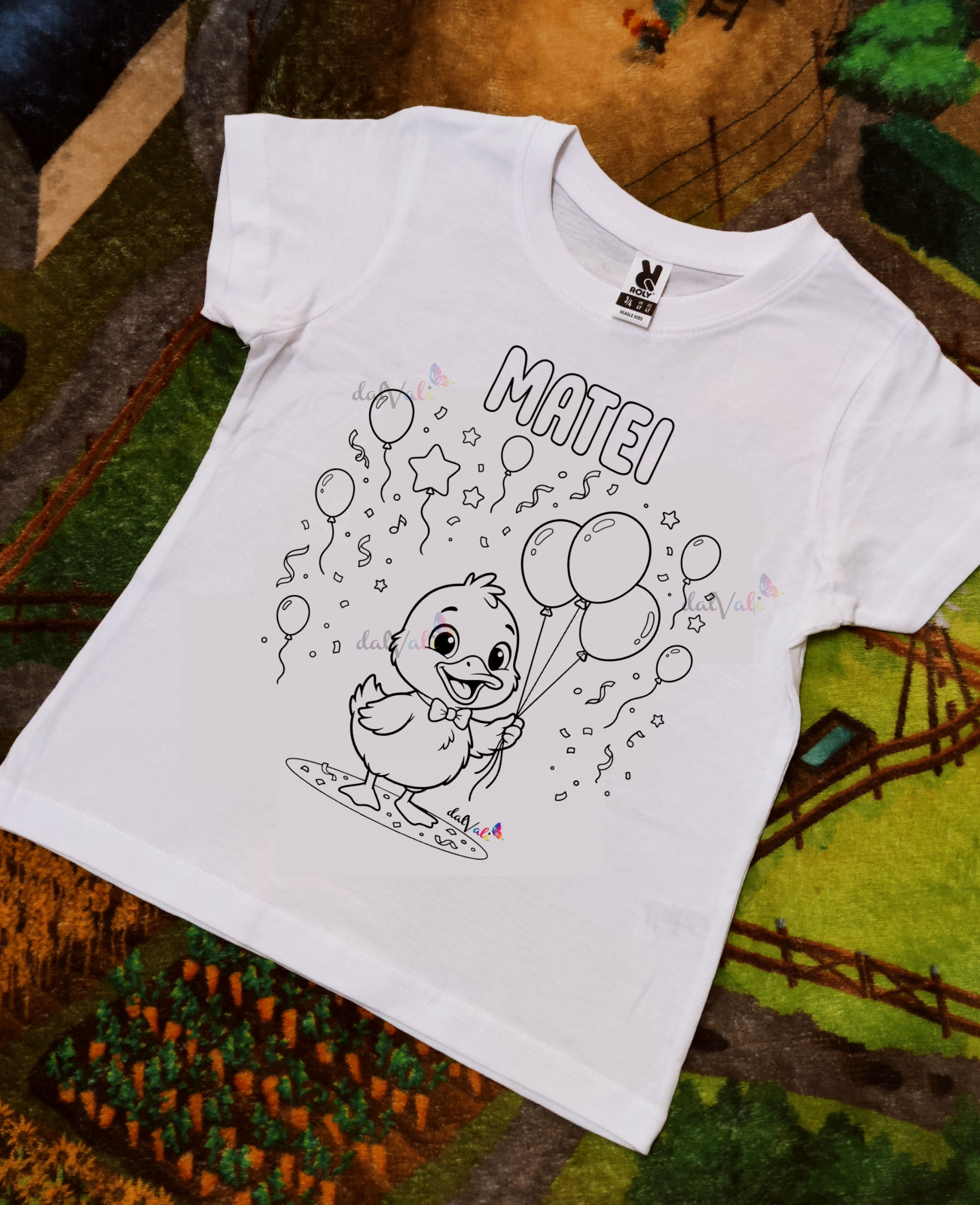 Tricoul de colorat pentru boboci poate fi personalizat GRATUIT cu numele copilasului deasupra imaginii.